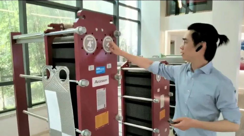 直播重點(diǎn)詳細(xì)介紹了AHRI認(rèn)證板式換熱器的設(shè)計(jì)原理和應(yīng)用場(chǎng)合,以及艾克森的換熱器產(chǎn)品設(shè)計(jì)特點(diǎn),接口銹鋼的襯套,滿足了過(guò)流部件均為不銹鋼,避免水質(zhì)污染,相比橡膠襯套而言使用壽命更長(zhǎng);考慮到日后的維護(hù)需求,螺紋保護(hù)套采用不銹鋼的,能滿足更長(zhǎng)時(shí)間的使用,產(chǎn)品的板片設(shè)計(jì)等技術(shù)核心;整個(gè)參觀過(guò)程中通過(guò)宣傳片和視頻,展示了太倉(cāng)工廠的生產(chǎn)設(shè)備和加工生產(chǎn)過(guò)程。