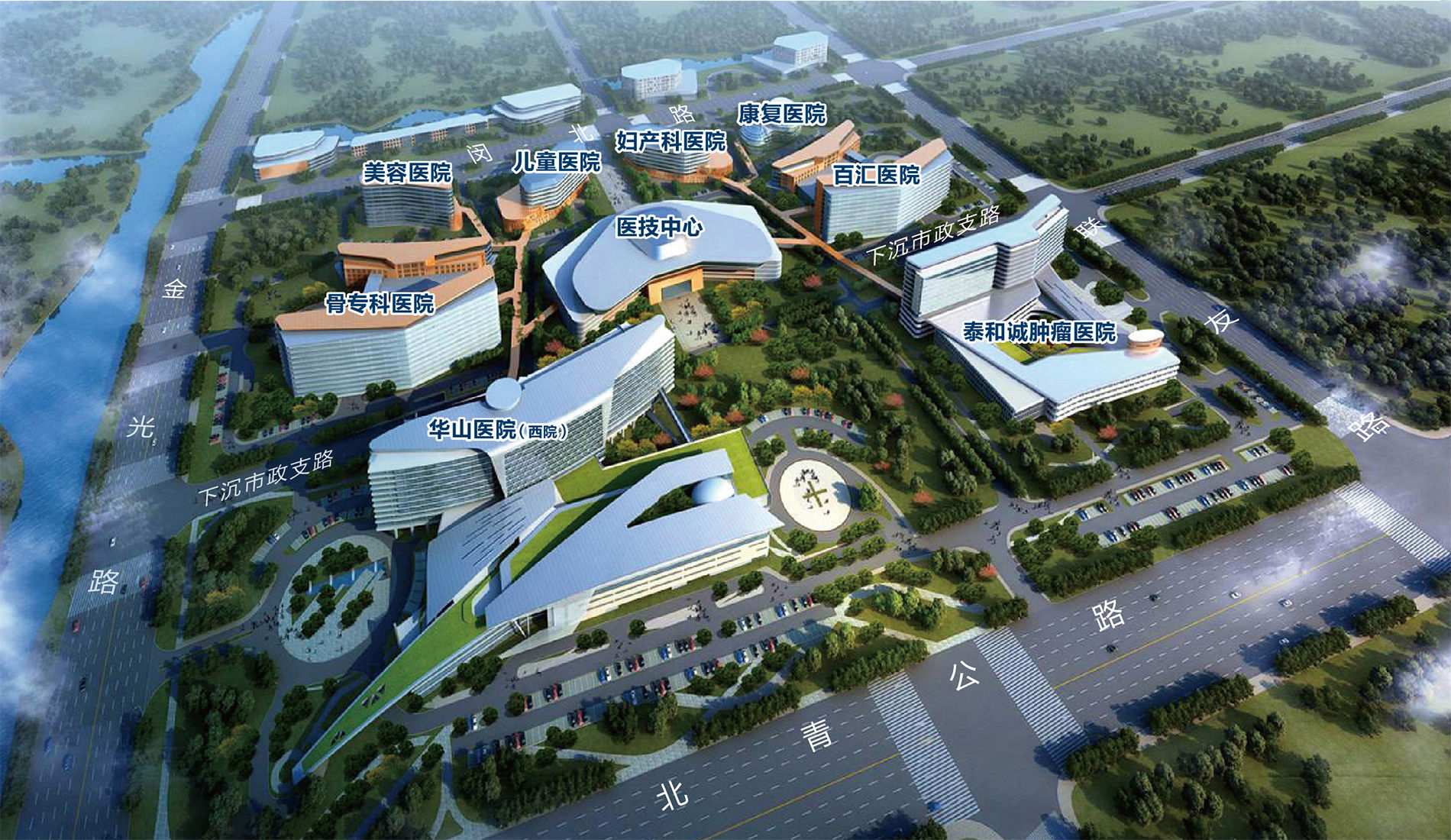 上海新虹橋國際醫(yī)學(xué)中心位于上海閔行虹橋交通樞紐商務(wù)區(qū)華漕鎮(zhèn)。規(guī)劃總面積約100公頃,一期規(guī)劃用地面積約42公頃,建筑面積約70萬平方米,規(guī)劃總投資約100億。擬形成1個(gè)醫(yī)技中心、7家高端醫(yī)院若干個(gè)特色門診的“1+7+X”布局,床位規(guī)模約為1900張。二期占地面積約58公頃,引入包括全美年度最佳醫(yī)院克利夫蘭醫(yī)學(xué)中心等知名的國內(nèi)外醫(yī)療機(jī)構(gòu),重點(diǎn)發(fā)展先進(jìn)的專科醫(yī)療服務(wù),打造醫(yī)療服務(wù)貿(mào)易平臺,培育醫(yī)療服務(wù)產(chǎn)業(yè)鏈將世界一流的醫(yī)療技術(shù)、服務(wù)理念、臨床路徑與國際質(zhì)量標(biāo)準(zhǔn)落地上海。
